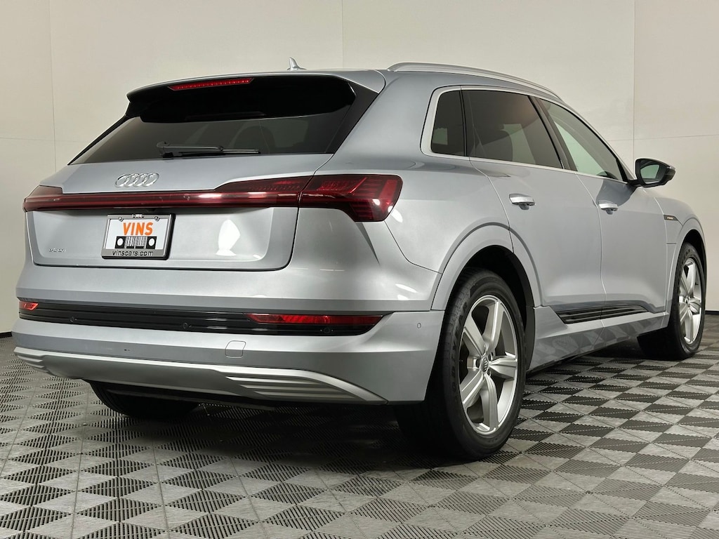 Clean CARFAX. CARFAX One-Owner. Florett Silver Metallic 2019 Audi e-tron Premium Plus quattro quattro Single-Speed Automatic Electric Motor Adaptive suspension, Audi Pre Sense 360, Audi smartphone interface (Apple CarPlay/Android Auto), Auto-dimming Rear-View mirror, Auto-leveling suspension, Automatic temperature control, Front dual zone A/C, Front fog lights, Fully automatic headlights, Heated & Ventilated 12-Way Power Front Seats, Heated door mirrors, Leather Seating Surfaces, Memory seat, Navigation system: Audi MMI Navigation plus with Touch Response, Power Liftgate, Power moonroof: Panoramic, Rear window defroster, Rear window wiper, Wheels: 20" 5-Arm Design.