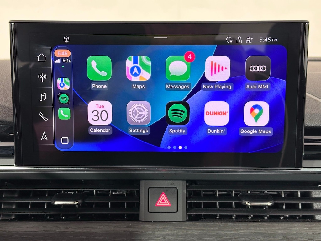 - Smart device integration: Audi smartphone interface w/wireless Apple CarPlay