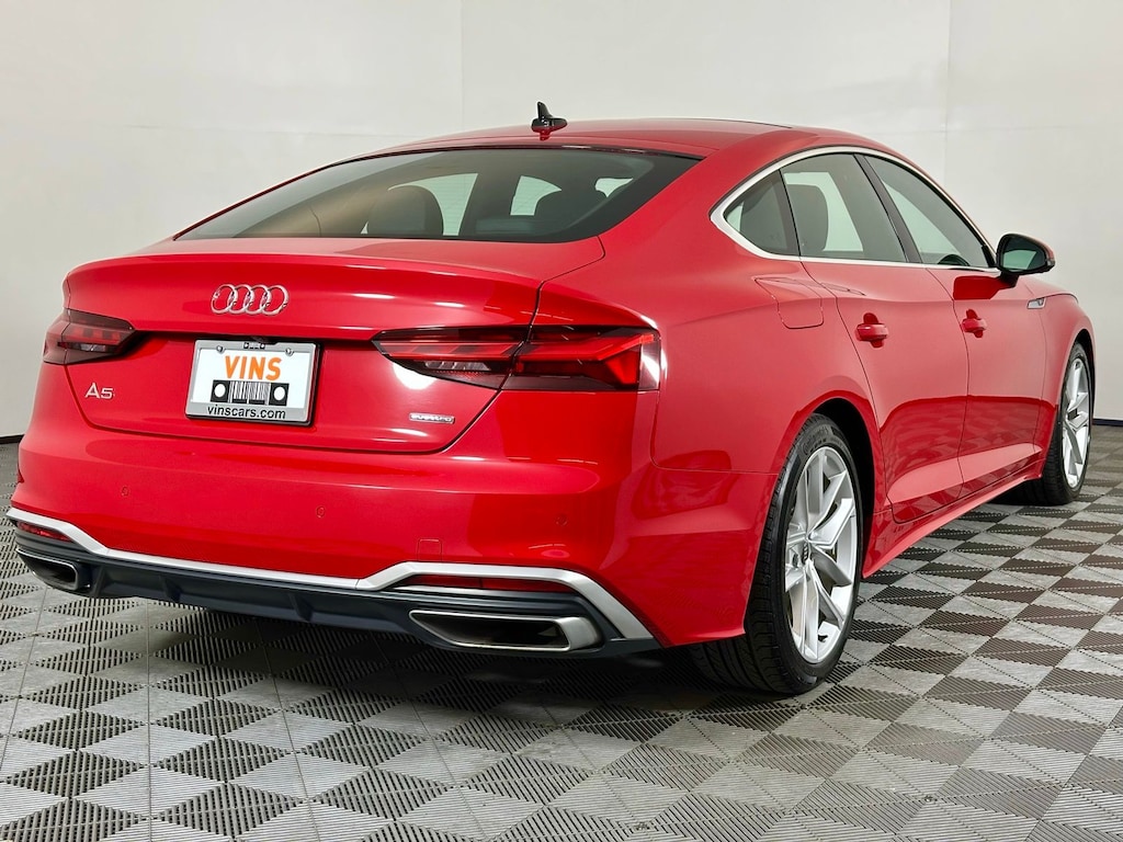 Clean CARFAX. CARFAX One-Owner. Progressive Red Metallic 2024 Audi A5 Sportback 45 S line Premium Plus quattro quattro 7-Speed Automatic S tronic 2.0L 4-Cylinder TFSI Auto-Dimming Exterior Mirrors w/Memory, Auto-dimming Rear-View mirror, Automatic temperature control, Bang & Olufsen Sound System w/3D Sound, Driver Seat Memory, Exterior Parking Camera Rear, Front dual zone A/C, Front fog lights, Heated Front Sport Seats, Heated steering wheel, Leather Seating Surfaces, Power Liftgate, Power moonroof, Rain sensing wipers, Rear window defroster, Top View Camera System, Wheels: 18" 5-Double-Spoke Design, Wireless Phone Charging Pad.