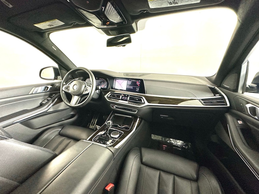 Clean CARFAX. Carbon Black Metallic 2020 BMW X7 xDrive40i AWD 8-Speed Automatic 3.0L I6 DOHC 24V 3rd row seats: split-bench, Active Driving Assistant Pro, Apple CarPlay & Android Auto Compatibility, Auto-dimming Rear-View mirror, Auto-leveling suspension, Exterior Parking Camera Rear, Front dual zone A/C, Front fog lights, Fully automatic headlights, harman/kardon Surround Sound System, Head-Up Display, Heated door mirrors, Heated Front Seats, Memory seat, Navigation System, Power moonroof, Rain sensing wipers, Rear dual zone A/C, Rear Electric Side Window Shades, Rear window defroster, Remote Engine Start, Soft-Close Automatic Doors, Vernasca Leather Upholstery w/Contrast Stitching, Wheels: 22" x 9.5" Fr & 22" x 10.5" Rr V-Spoke.