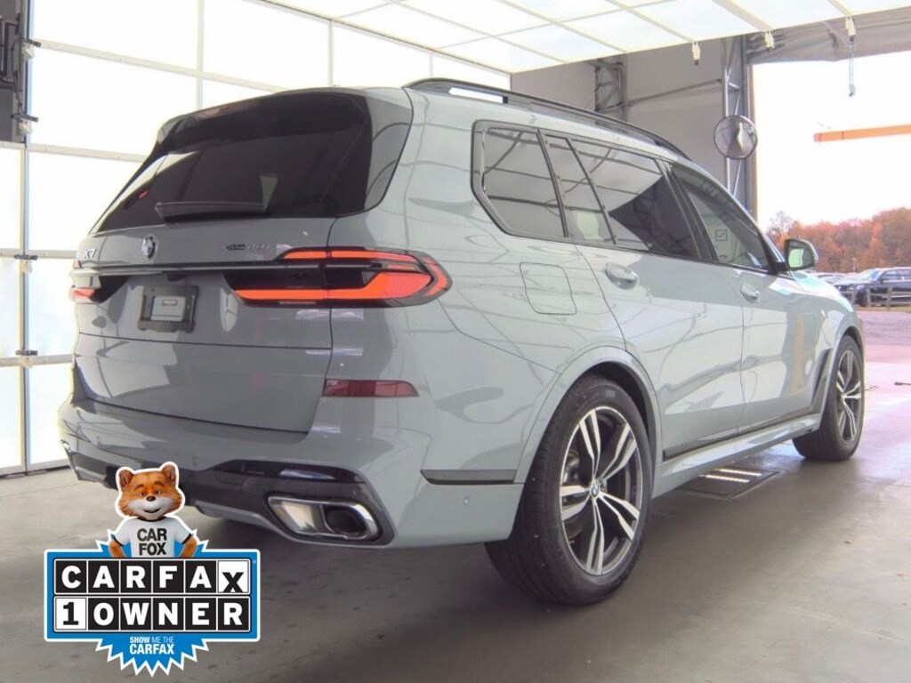 CARFAX One-Owner. Brooklyn Gray Metallic 2024 BMW X7 xDrive40i AWD 8-Speed Automatic Sport 3.0L I6 DOHC 24V 3rd row seats: split-bench, 5-Zone Automatic Climate Control, Adaptive suspension, Apple CarPlay & Android Auto Compatibility, Auto-dimming Rear-View mirror, Auto-leveling suspension, Exterior Parking Camera Rear, Front & Rear Heated Seats, Front Heated, Ventilated, & Massaging Seats, Fully automatic headlights, harman/kardon Surround Sound System, Heads-Up Display, Heated & Cooled Cup Holders, Heated door mirrors, Heated steering wheel, Memory seat, Navigation system: BMW Maps Navigation, Panoramic Sky Lounge LED Roof, Parking Assistant Professional, Rain sensing wipers, Rear Electric Side Window Shades, Rear window defroster, Sensafin Upholstery, Soft-Close Automatic Doors, Surround View w/3D View, Wheels: 21" x 9.5" Y-Spoke Bi-Color, Wireless Charging Device.