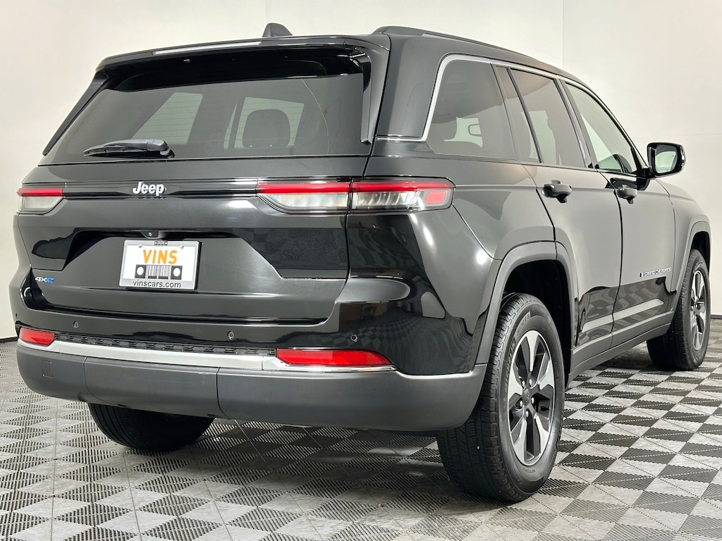 CARFAX One-Owner. Diamond Black Crystal Pearlcoat 2023 Jeep Grand Cherokee 4xe 4WD 8-Speed Automatic 2.0L I4 DOHC 2.0L I4 DOHC, 4WD, Audio memory, Auto-Dimming Exterior Driver Mirror, Automatic temperature control, Capri Leatherette Seats, Front dual zone A/C, Front fog lights, Fully automatic headlights, Heated door mirrors, Heated front seats, Heated rear seats, Heated steering wheel, Heavy Duty Suspension, Memory seat, Navigation System, ParkView Rear Back-Up Camera, Power Liftgate, Power moonroof, Radio: Uconnect 5 Nav w/10.1" Display, Rear window defroster, Spoiler, Wheels: 18" x 8" Fully Painted Aluminum.