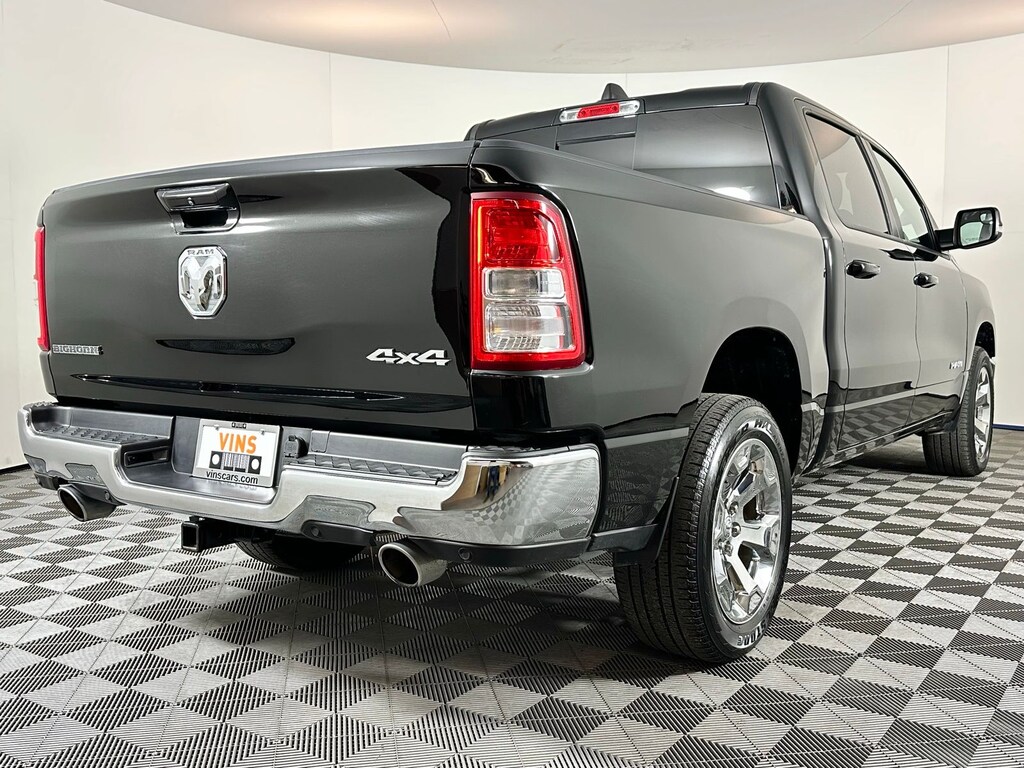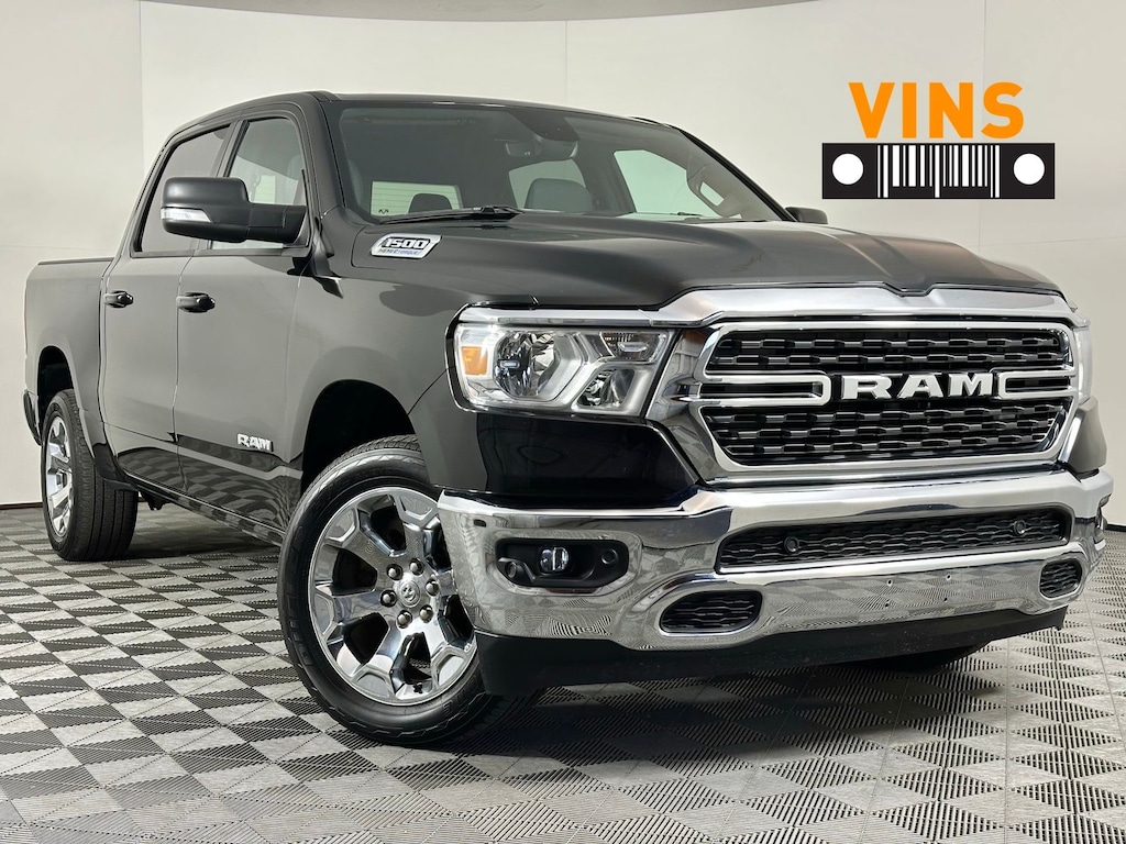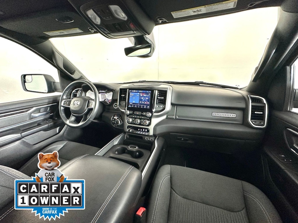 Clean CARFAX. CARFAX One-Owner. Diamond Black Crystal Pearlcoat 2022 Ram 1500 Big Horn/Lone Star 4WD 8-Speed Automatic HEMI 5.7L V8 Multi Displacement VVT 2nd Row In Floor Storage Bins, 3.21 Rear Axle Ratio, Air Conditioning ATC w/Dual Zone Control, Apple CarPlay & Android Auto, Auto-Dimming Rear-View Mirror, Class IV Receiver Hitch, Deluxe Cloth Bucket Seats, Dual Rear Exhaust w/Bright Tips, Exterior Mirrors w/Heating Element, Front fog lights, Fully automatic headlights, GPS Navigation, Heated Front Seats, Heated Steering Wheel, Heavy-Duty Engine Cooling, ParkView Rear Back-Up Camera, Radio: Uconnect 5 Nav w/8.4" Display, Rear Power Sliding Window, Rear Window Defroster, Remote Start System, Trailer Brake Control, Universal Garage Door Opener, Wheels: 20" x 9" Aluminum Chrome Clad (WRK).