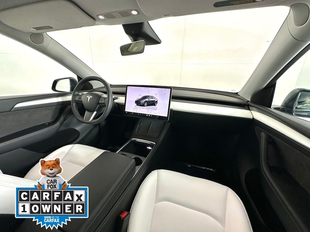 CARFAX One-Owner. Midnight Silver Metallic 2022 Tesla Model Y Long Range AWD 1-Speed Automatic Electric Motor 5 Seat Interior, Audio memory, Auto-dimming Rear-View mirror, Exterior Parking Camera Rear, Front dual zone A/C, Front fog lights, Fully automatic headlights, Heated door mirrors, Heated front seats, Heated rear seats, Heated steering wheel, HVAC memory, Memory seat, Navigation System, Power Liftgate, Premium Audio System, Premium Seat Trim, Rain sensing wipers, Rear window defroster, Wheels: 19" x 9.5" Gemini, White & Black Premium Interior.